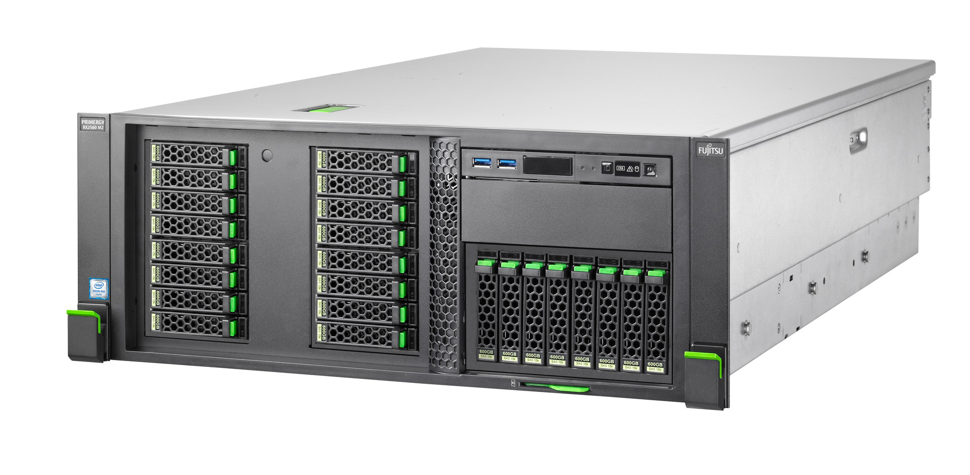 Fujitsu Primergy RX2560 M2 to dwuprocesorowy serwer stelażowy o wymiarach 4U. Intel Xeon E5-2600v4 zapewni odpowiednią wydajność dla centr danych, jak i dużych przedsiębiorstw. Maksymalna ilość pamięci operacyjnej to 3TB. Serwer posiada 10 gniazd rozszerzeń i obsługuje maksymalnie 14 dysków 3,5-calowych lub 32 2,5-calowych. Dzięki zastosowaniu dwóch nadmiarowych zasilaczy z możliwością wymiany podczas pracy serwer zapewnia najwyższą dostępność i możliwość przyszłej rozbudowy.
